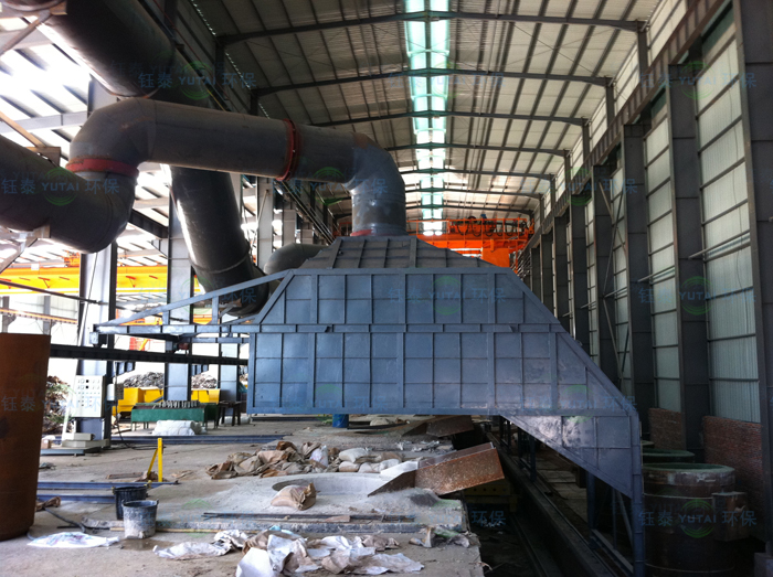 中頻爐除塵器是目前國內(nèi)處理爐內(nèi)煙塵時常采用的除塵設(shè)備,根據(jù)電爐產(chǎn)生的煙塵具有細(xì)且粘的特點,為了袋式除塵器在適當(dāng)?shù)淖枇λ较抡9ぷ?,要求電爐除塵器應(yīng)具有較強的清灰能力,因此除塵設(shè)備選用了長袋低壓大型脈沖袋式除塵器。大型電爐袋式除塵器已在電
