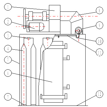 (3)搖動機構(gòu)包括:⑨搖動用減速電機⑩曲桿,搖動連桿③搖動軸(或稱濾袋懸掛軸);