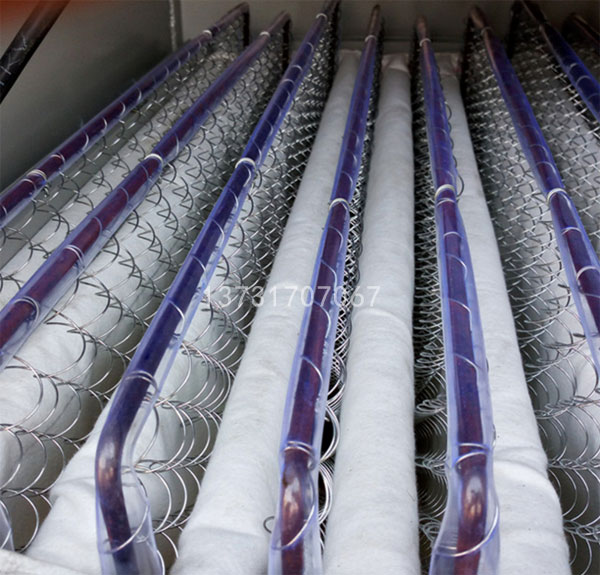 除塵骨架采用鋼絲框架和彈簧絲,彈簧絲具有很好的伸縮性,振動(dòng)電機(jī)在帶動(dòng)濾袋振動(dòng)時(shí),彈簧絲有助于濾袋表面的灰塵抖落。