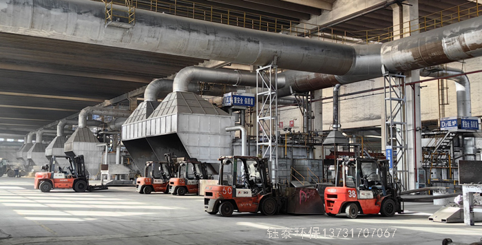 煙氣降溫器+高溫布袋除塵器組合適用于銅、鋁、鉛、鋅熔煉爐產(chǎn)生的高溫?zé)煔猓に嚵鞒滩捎茫杭瘹庹?風(fēng)管+翅片散熱器+風(fēng)管+脈沖布袋除塵器+引風(fēng)機(jī)達(dá)到除塵脫硫的目的。 熔爐的煙氣通過集煙罩收集(此時的煙氣溫度在250度-300度左右)通過支煙管并入主煙道,送