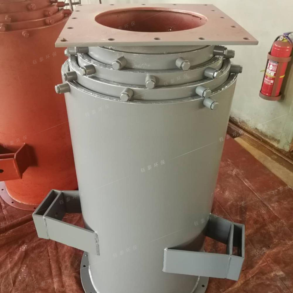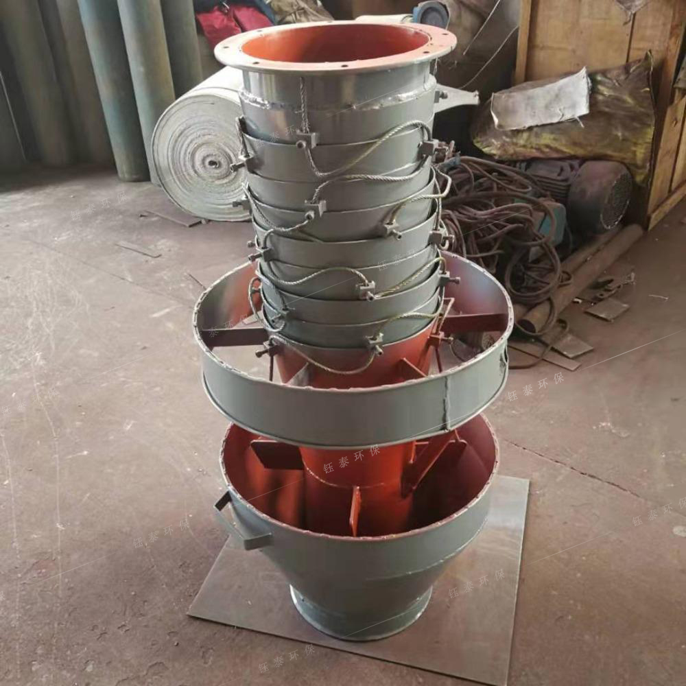制作外伸縮布袋方式:要求伸縮布袋上每2個相鄰漲圈之間的垂直間距必須≤10cm,見圖1。當(dāng)外伸縮布袋折疊后2個相鄰漲圈之間的布袋向內(nèi)褶皺時,不能阻擋住與內(nèi)直鋼套筒外壁之間形成的環(huán)形負壓吸塵通道的橫截面,從而降低負壓吸塵的通過量??蛻羰褂矛F(xiàn)場反饋漲圈間距大的吸塵氣流明顯比漲圈間距小的吸塵氣流更加順暢。